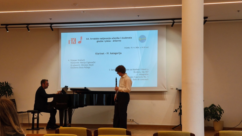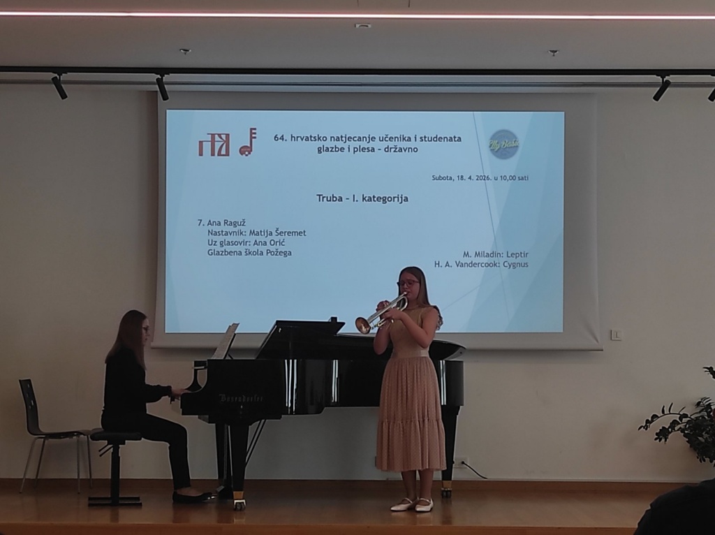 Glazbena škola Požega ostvarila je izniman uspjeh na ovogodišnjem 64. hrvatskom natjecanju učenika i studenata glazbe i plesa, jednom od najvažnijih državnih natjecanja u području glazbenog obrazovanja. Školu je predstavljalo ukupno 12 natjecatelja – 11 solista i mješoviti zbor – koji su osvojili niz vrhunskih plasmana, uključujući i nekoliko Oskara znanja, najvišeg priznanja koje učenik može ostvariti u obrazovnom sustavu Republike Hrvatske.