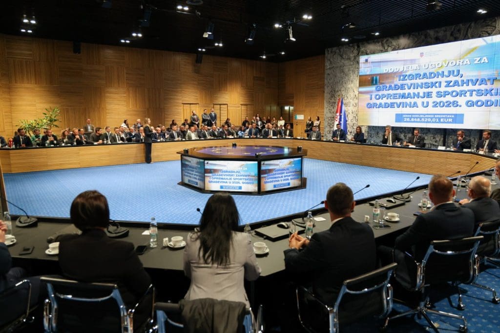 U Nacionalnoj i sveučilišnoj knjižnici u Zagrebu održana je svečana dodjela ugovora u okviru Javnog poziva za sufinanciranje izgradnje i rekonstrukcije sportskih građevina za 2026. godinu. Ukupna vrijednost dodijeljenih sredstava iznosi 26,8 milijuna eura, a obuhvaćeno je 148 projekata diljem Hrvatske.